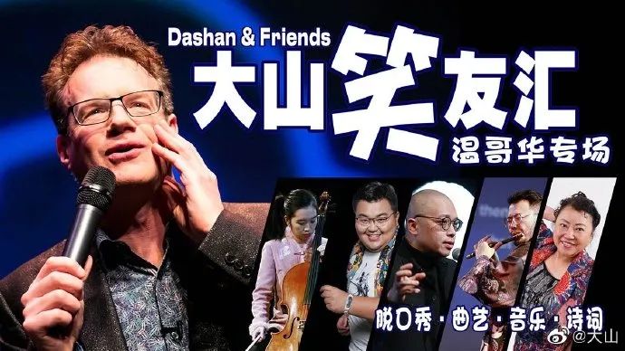 大山回顾了自己80年代末一夜成名的经历和过去在相声、喜剧和影视表演的付出与成长, 并且分享了自己在疫情三年中遇到的挑战和艺术上突破,尤其是他在短视频媒体上对诗朗诵的尝试受到华语观众的极大欢迎,给了他很大的启发。 大山认为“喜剧是非常有效的一种沟通方式”,因此他仍然喜欢用喜剧表演的方式,把快乐带给中国观众。