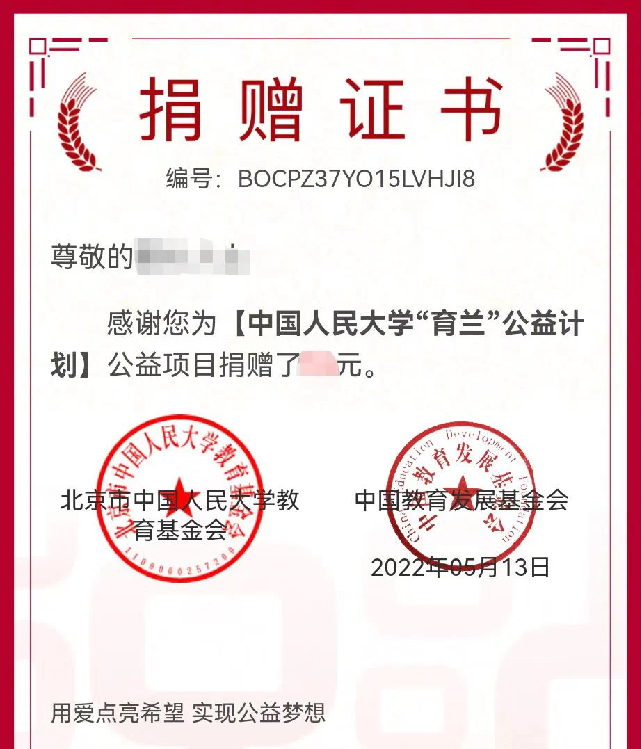 文字来源:中国人民大学教育基金会