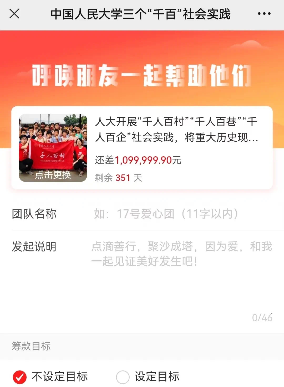 进入捐赠页面,点击最下方“一起捐”,填写好“团队名称”和“发起说明”后,点击“预览”,在确认信息无误后,点击“发起”,即可组团为该项目进行捐赠~