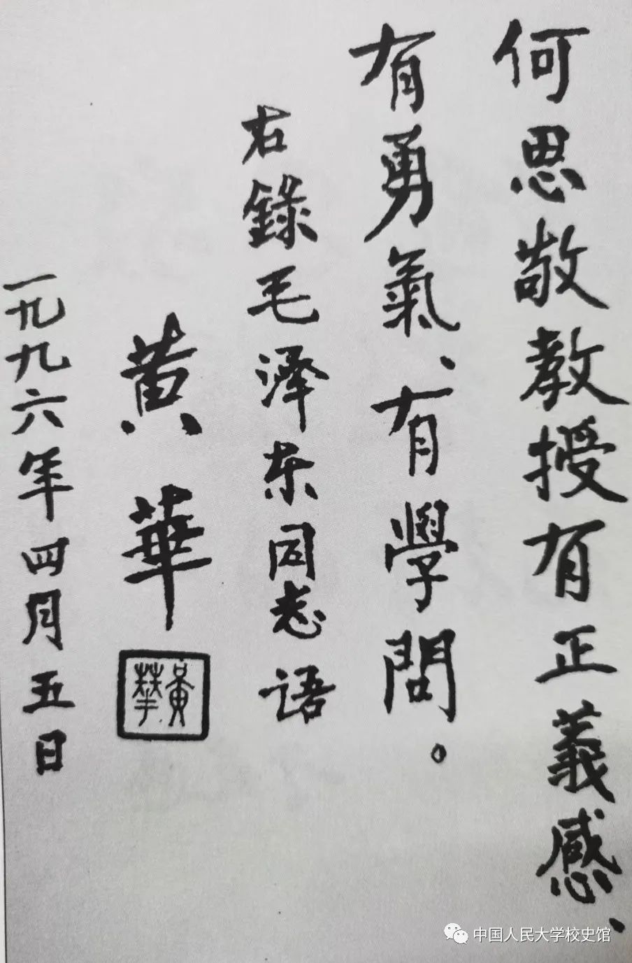 图一:黄华题词