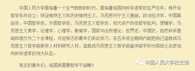 1956年暑期,哲学系从全国各地招收应届高中毕业生200名。中国人民大学哲学系诞生了。这块马克思主义理论宣传阵地的创建,第一任系主任何思敬功不可没。